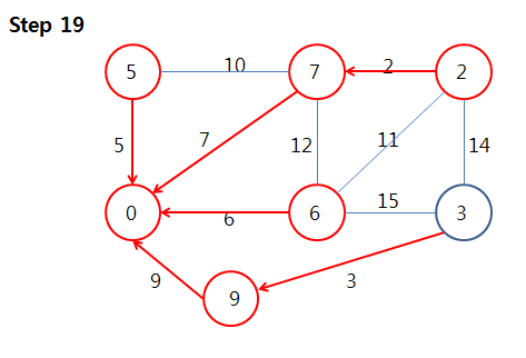 이제 start vertex에 대해서 모든 간선들을 확인해보았습니다.